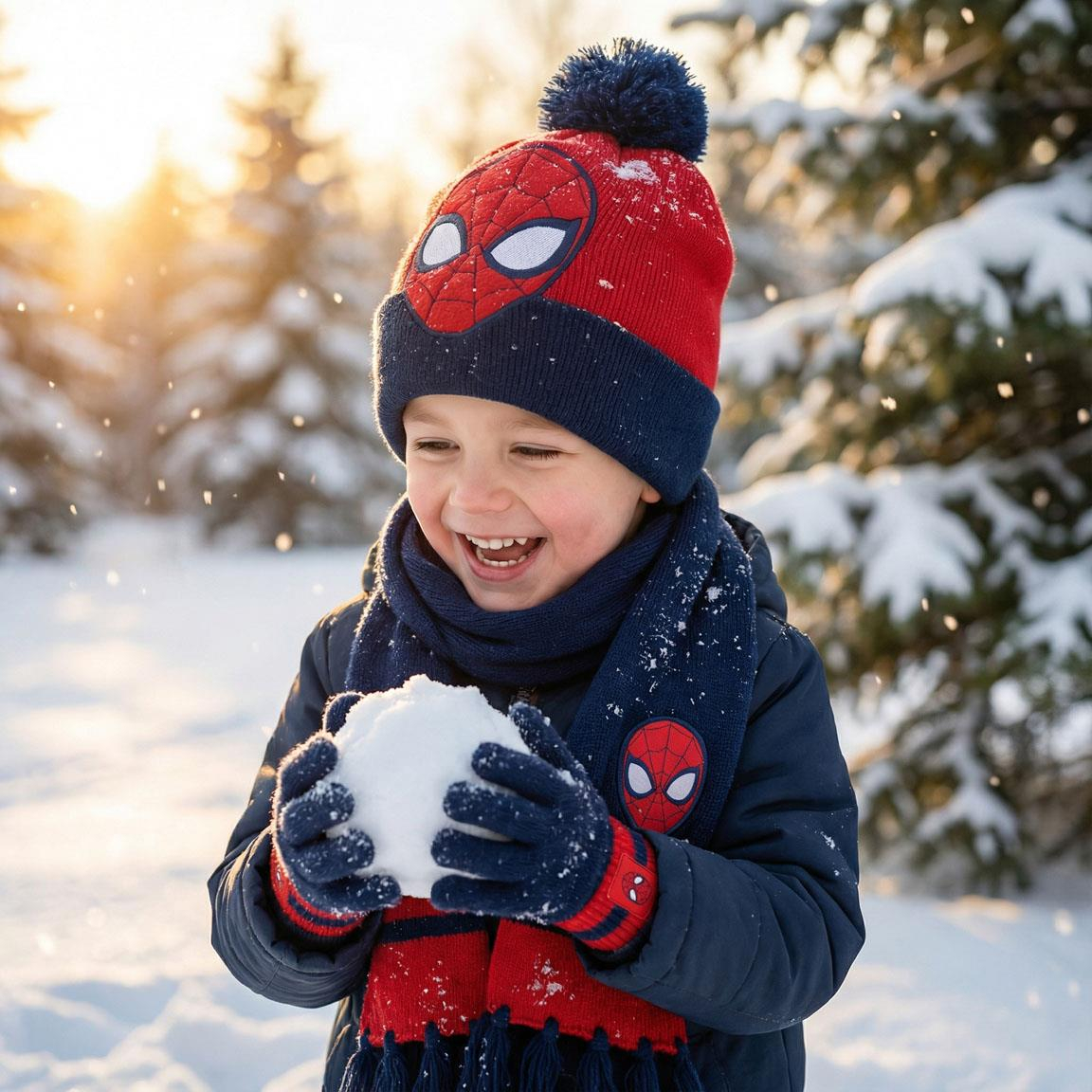 Set 3 piese pentru iarna din acril Spiderman Varsta 4-8 ani Compozitie: 100% acrilic