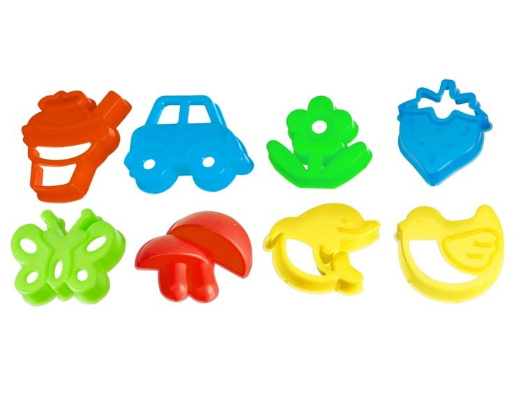 Setul de nisip pentru copii contine 14 matrite din plastic, greble, o sita, o spatula si o palnie. Nu te poti plictisi cu astfel de accesorii.